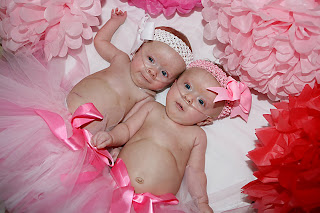 Here are some pictures of the girls taken on Valentine’s Day. They were taken by Carrie Furry who owns Fingerprints of Grace. She takes pictures for families dealing with grief and uncertainty. She came to our house and did an amazing job of capturing the girls’ personalities! The tutus came from sweetiepietutus (an Etsy shop). I had ordered them, along with some cute cupcake onesies for the girls’ 6 month birthdays, but they were just too cute to pass up using for our photoshoot! The fluffy ball things were made by Carol’s Girl Scout Troop. They made them to hang above the girls’ crib so they would have something fun to look at.